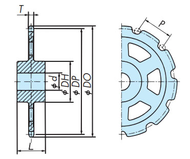- 如果链轮材料为300系列不锈钢或树脂,则链轮将采用特殊规格。