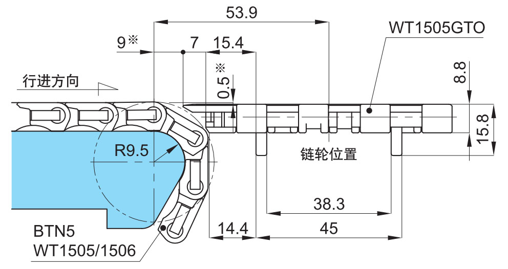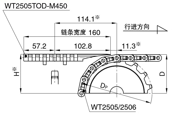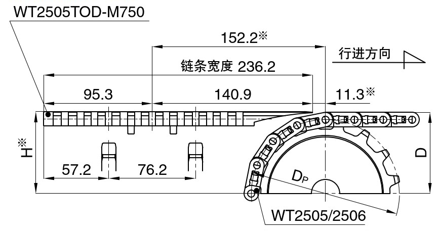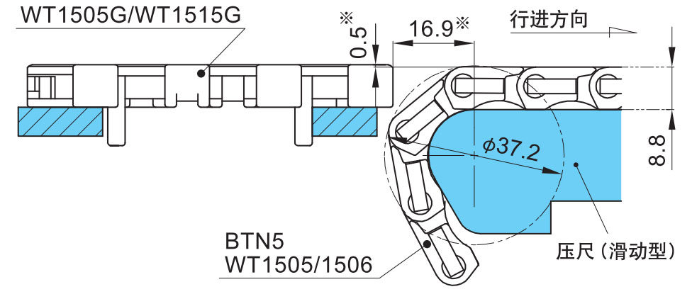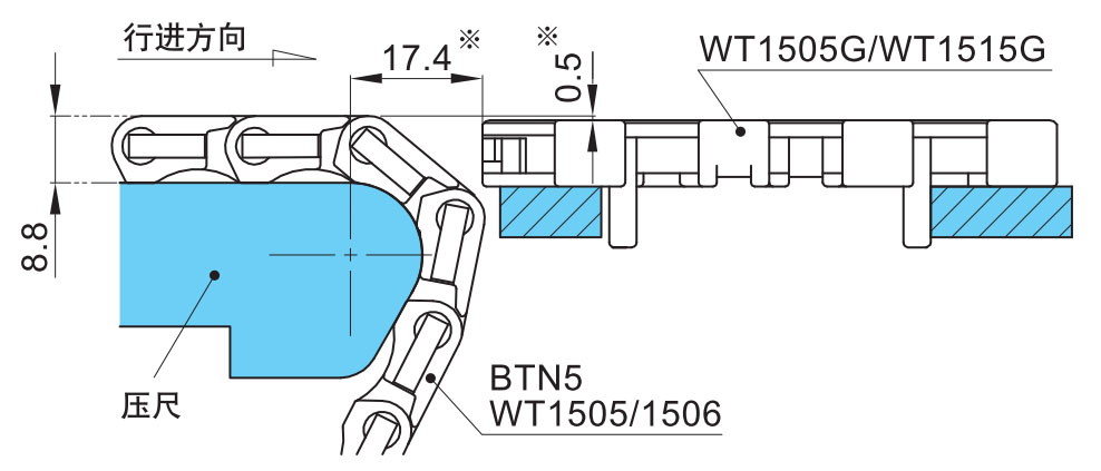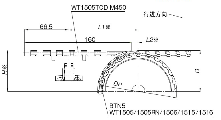 ■WT151 5T-FW 和 WT151 6T-FW 链条带有防上浮附件(阻力板)