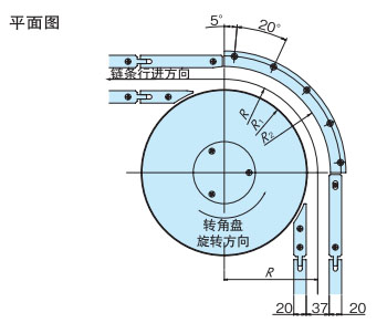 塑料模块链条可进行正反转操作。请参考以下示例了解正反转操作。