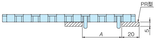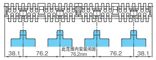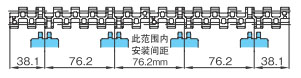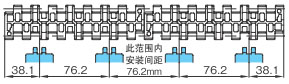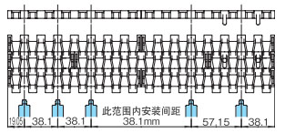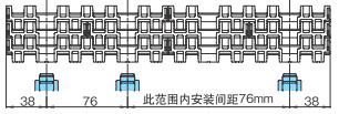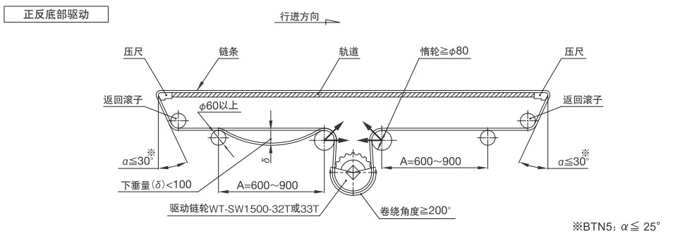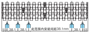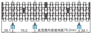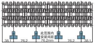 导轨应与链轮交替等间距放置。关于导轨间隔A, BTN为76mm, BT6、BT8、WT1500、WT3005、BTC8S为76.2mm, WT2500为76.2mm (导轨宽度25mm),WT3086、WT2250为85mm, WT3816为100mm (导轨宽度30mm) 。