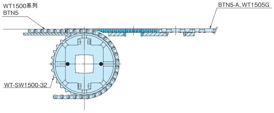 我们建议您使用链条(TOD型、GTO型),其中链条和传输部分是集成的。布局等请参照以下内容。