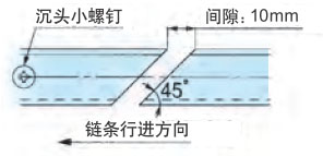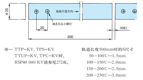 导向链的导轨间隙请参考下表。使用多排时,链条之间应留出约 1 mm的间隙。