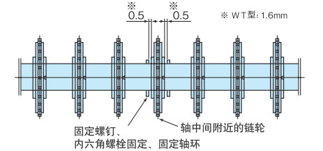 调整滚子的安装间隔 (传送带宽度方向),使其与要使用的链宽相匹配。