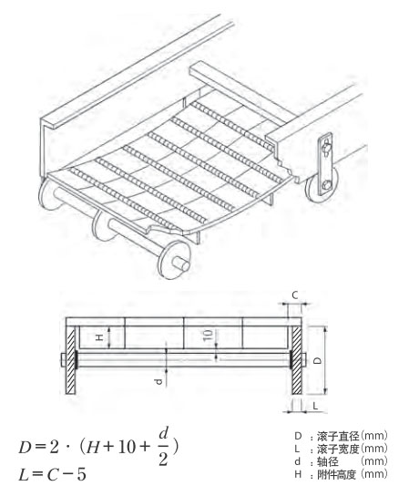 ※对于宽链,滚子应以765mm的间隔安装。
