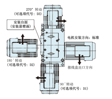 | A20 | 电机安装方向可作为一项可选配置进行更改。[选配置代码:D1 至 D3] ![]() |