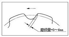 寿命和更换的标准是确认牙齿的磨损。链轮会因牙齿磨损而降低强度,给链条传动带来不良影响。 请在定期检查出现问题之前更换新的链轮。确认要点如下。