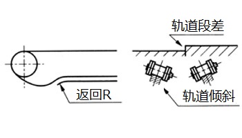 | 原因2 | 衬套/滚子滑动部的供油不足 | 措施 | 使用轴承滚轮和塑料滚子。 |